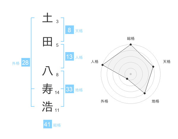 土田 八寿浩さんを姓名の画数から五運を鑑定