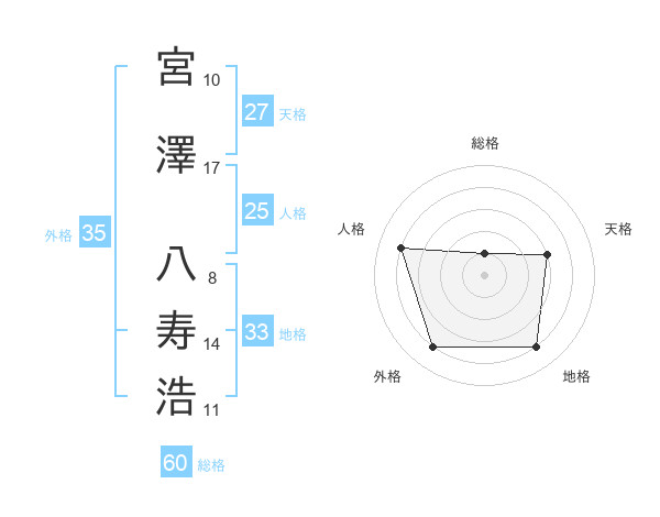 宮澤 八寿浩さんを姓名の画数から五運を鑑定