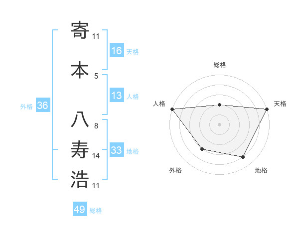 寄本 八寿浩さんの天格は16画の5点!
