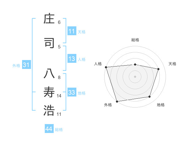 庄司 八寿浩さんの地格は33画の4点!