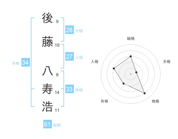 後藤 八寿浩さんの総格は61画の3点!