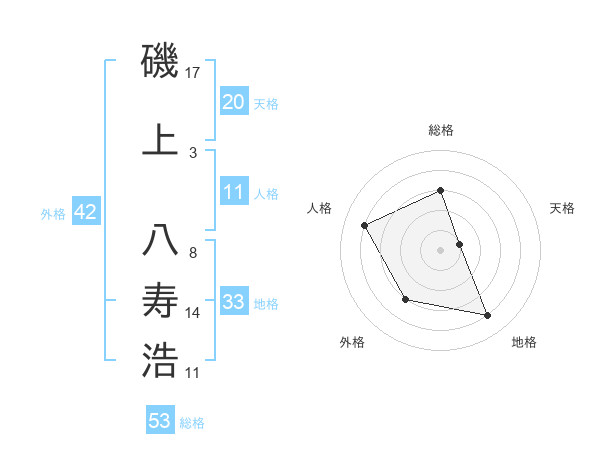 磯上 八寿浩さんの総格は53画の3点!