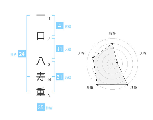 一口 八寿重さんの総格は35画の4点!