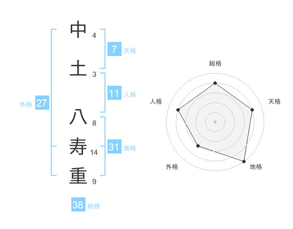 中土 八寿重さんを姓名の画数から五運を鑑定