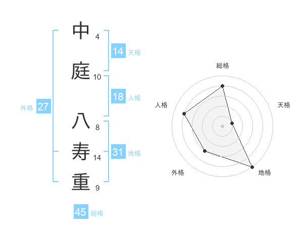 中庭 八寿重さんの総格は45画の4点!