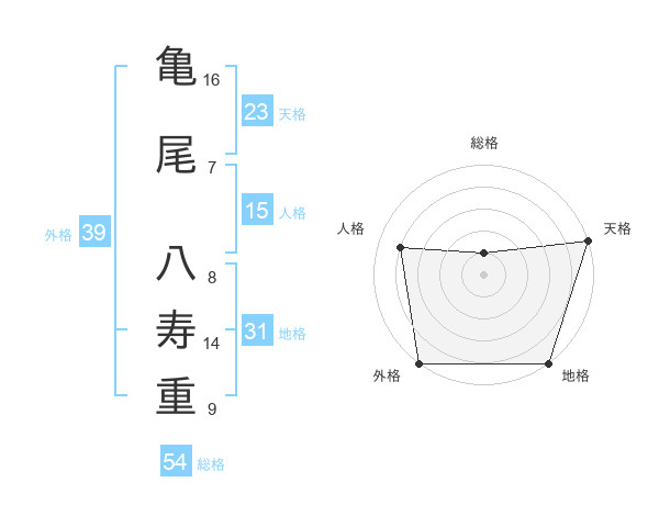 亀尾 八寿重さんを姓名の画数から五運を鑑定