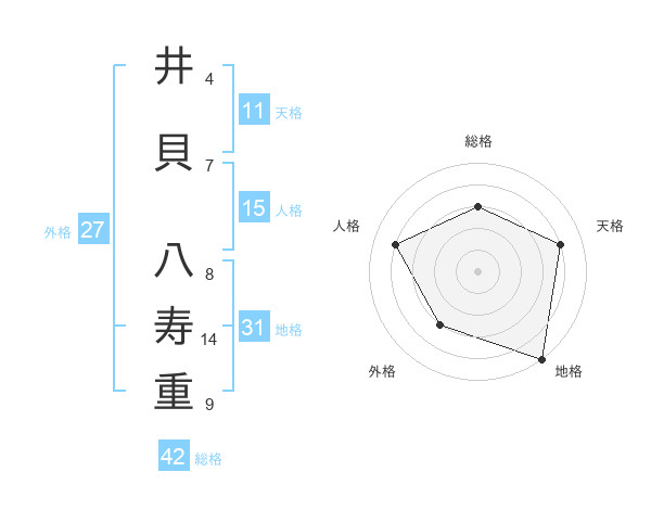 井貝 八寿重さんを姓名の画数から五運を鑑定