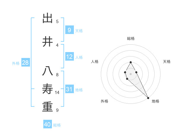 出井 八寿重さんを姓名の画数から五運を鑑定