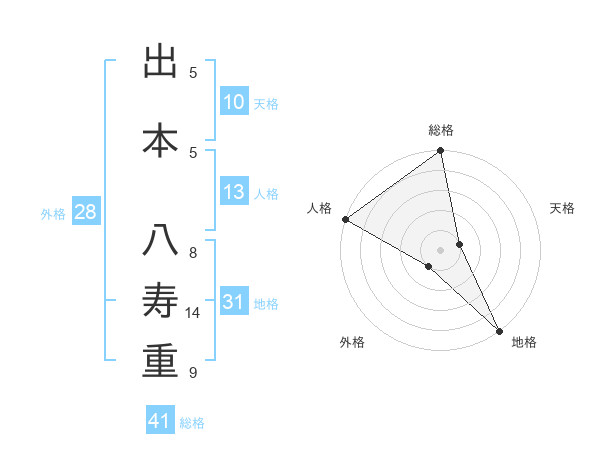 出本 八寿重さんを姓名の画数から五運を鑑定