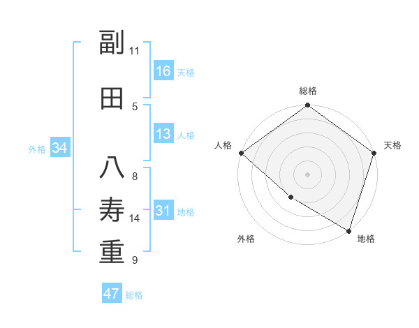 副田 八寿重さんを姓名の画数から五運を鑑定