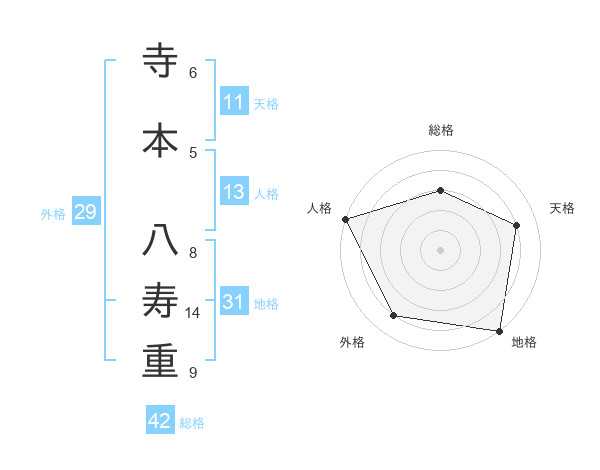 寺本 八寿重さんを姓名の画数から五運を鑑定