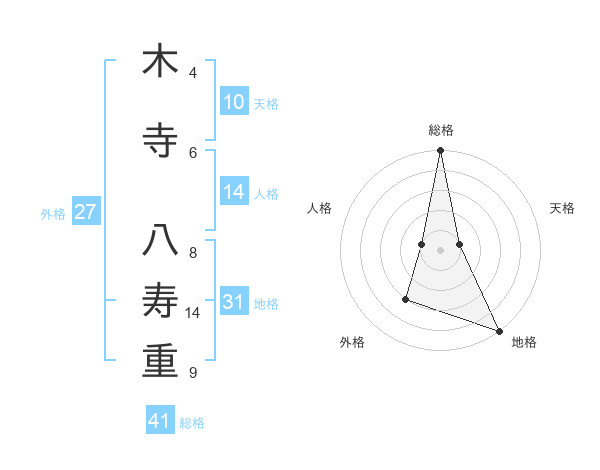 木寺 八寿重さんの総格は41画の5点!