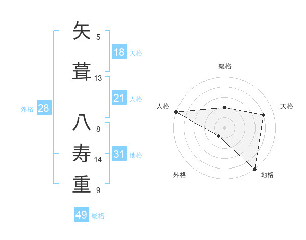 矢葺 八寿重さんの総格は49画の2点!