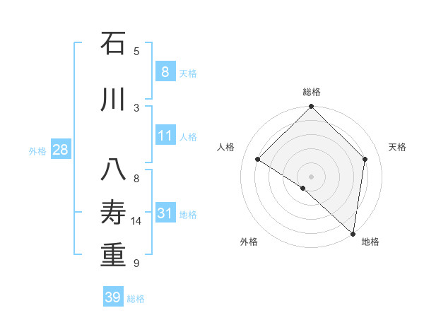 石川 八寿重さんを姓名の画数から五運を鑑定