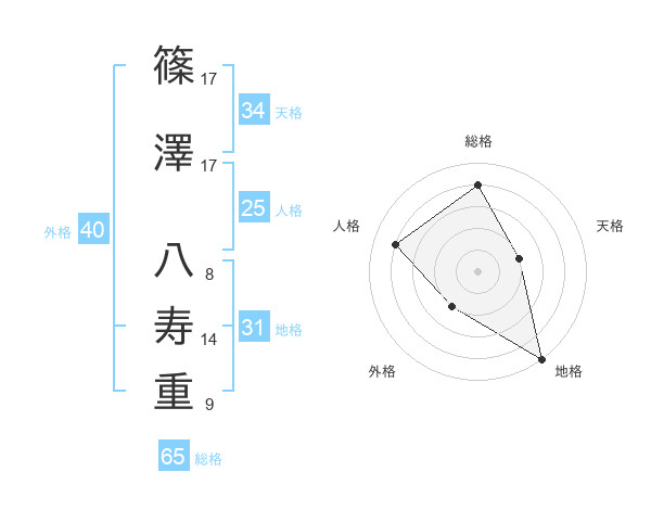 篠澤 八寿重さんの総格は65画の4点!