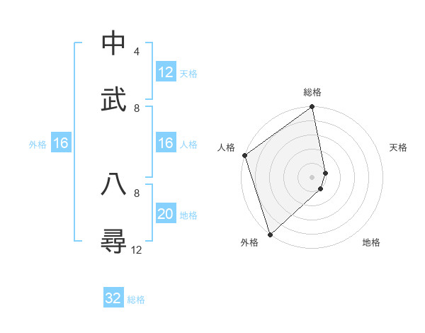 中武 八尋さんの総格は32画の5点!