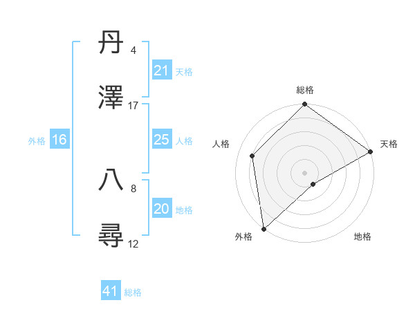 丹澤 八尋さんの天格は21画の5点!