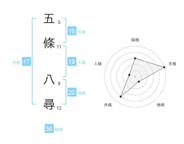 五條 八尋さんの天格は16画の5点!