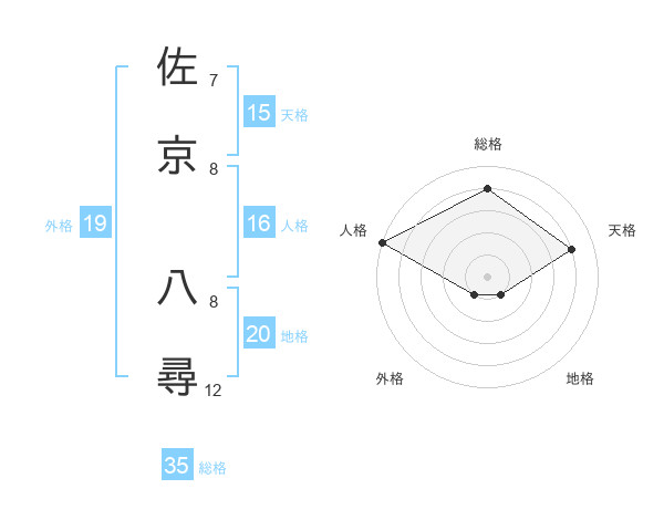 佐京 八尋さんの総格は35画の4点!