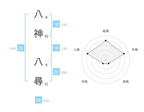 八神 八尋さんの総格は38画の4点!