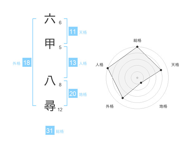 六甲 八尋さんを姓名の画数から五運を鑑定