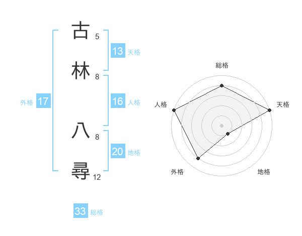 本サイトの鑑定結果の正当性は保証しません。鑑定結果は参考程度にお読みください。実際の名づけにご利用される場合は、姓名判断についてご自身でよくお調べください。