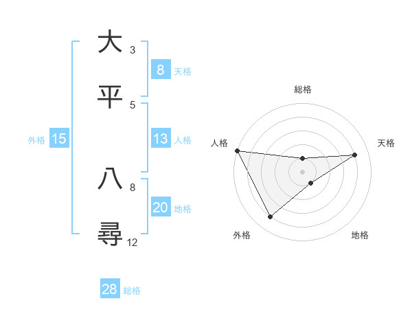 大平 八尋さんの天格は8画の4点!