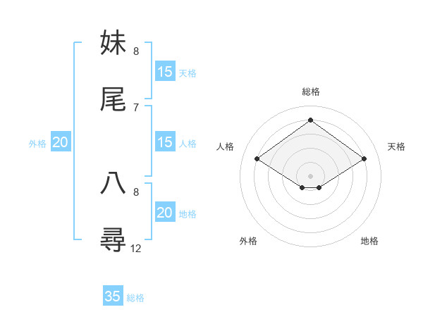 妹尾 八尋さんの天格は15画の4点!