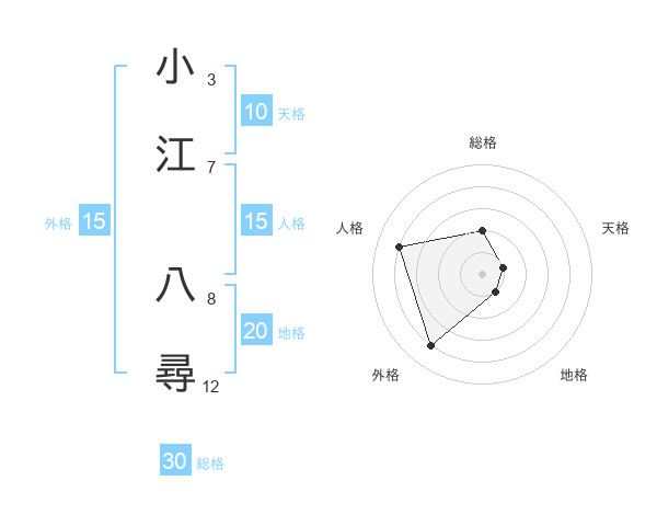小江 八尋さんの外格は15画の4点!