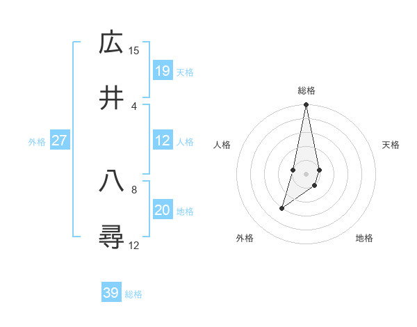 広井 八尋さんの総格は39画の5点!