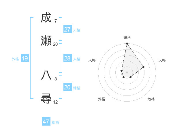 成瀬 八尋さんを姓名の画数から五運を鑑定