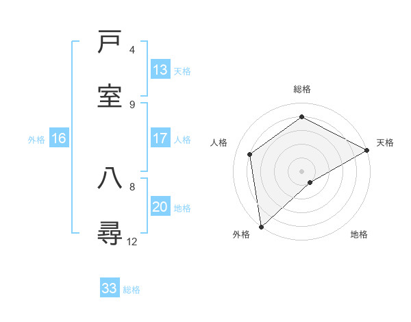 戸室 八尋さんの天格は13画の5点!