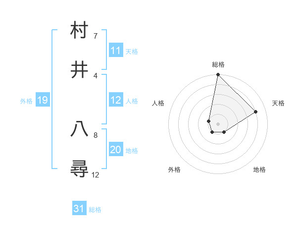 村井 八尋さんの総格は31画の5点!
