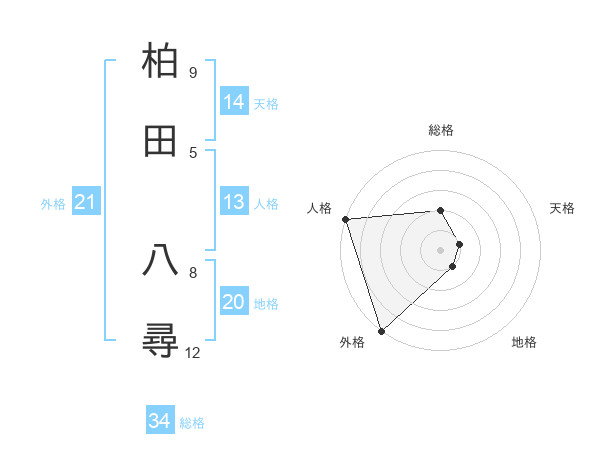 柏田 八尋さんの天格は14画の1点!
