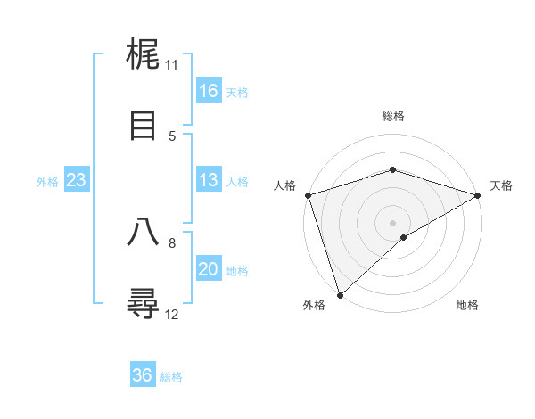 梶目 八尋さんの外格は23画の5点!