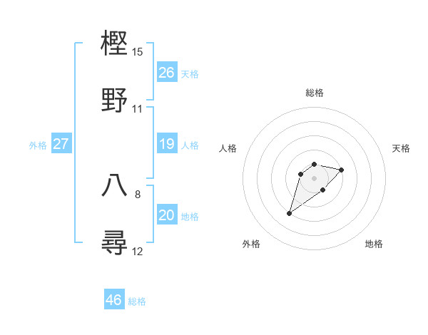 樫野 八尋さんの天格は26画の2点!