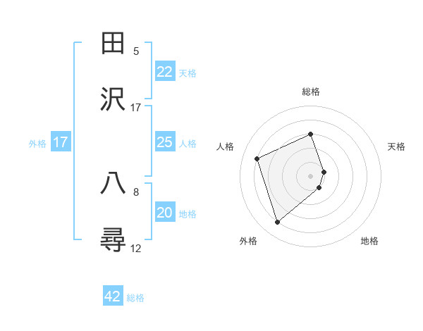 田沢 八尋さんの天格は22画の1点!
