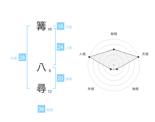 篝 八尋さんの天格は16画の5点!