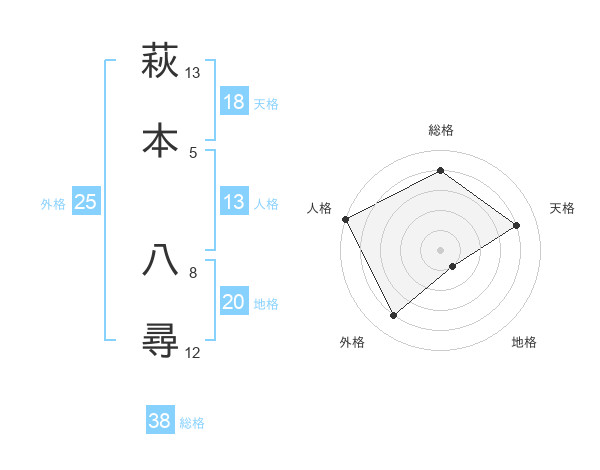 萩本 八尋さんの天格は18画の4点!