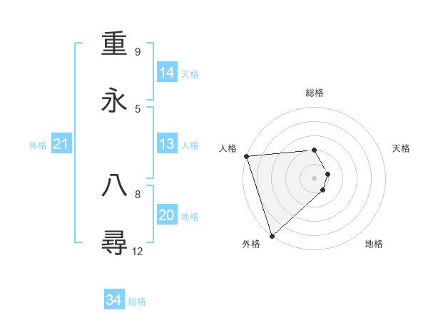 重永 八尋さんの外格は21画の5点!