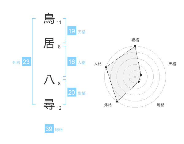 鳥居 八尋さんを姓名の画数から五運を鑑定