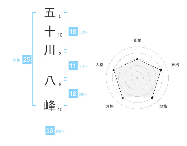 五十川 八峰さんを姓名の画数から五運を鑑定