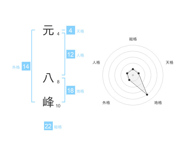 元 八峰さんの総格は22画の1点!
