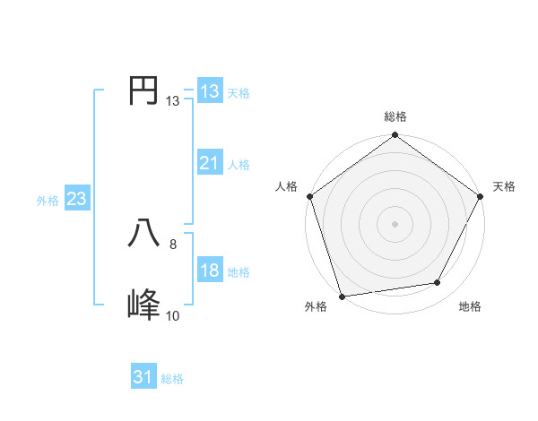 円 八峰さんの総格は31画の5点!
