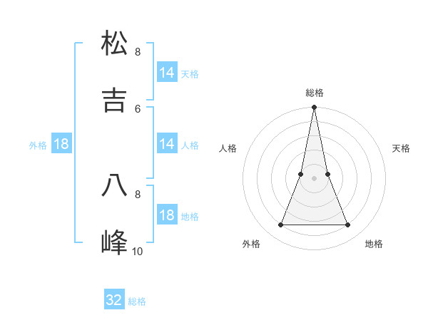 松吉 八峰さんを姓名の画数から五運を鑑定