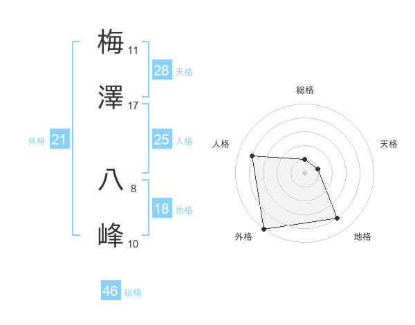 梅澤 八峰さんを姓名の画数から五運を鑑定
