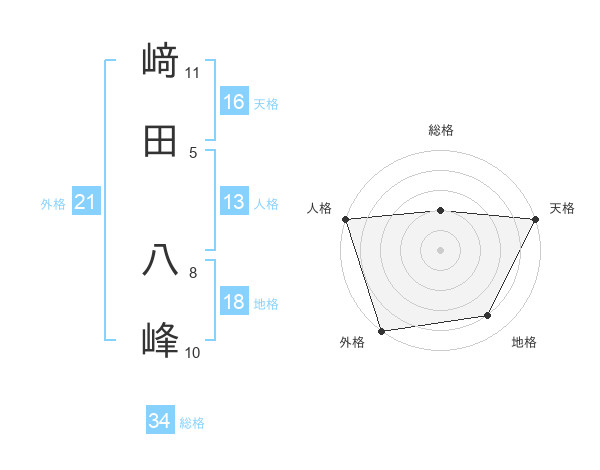 﨑田 八峰さんの総格は34画の2点!