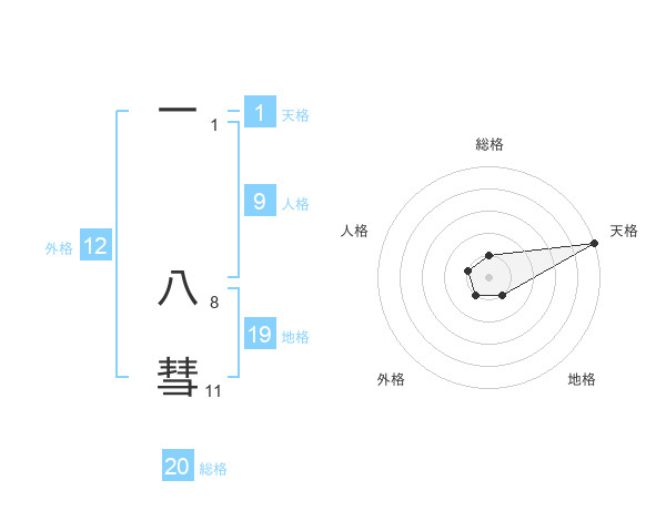 一 八彗さんの総格は20画の1点!