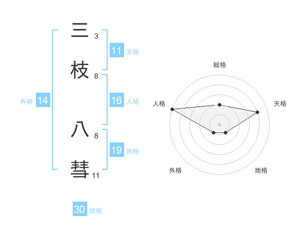 三枝 八彗さんを姓名の画数から五運を鑑定