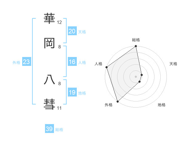 華岡 八彗さんを姓名の画数から五運を鑑定